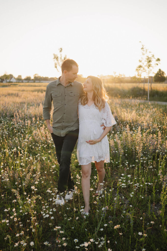Draußen fotografiere ich am liebsten im weichen, warmen Licht kurz vor und während des Sonnenuntergangs. Die Natur bietet die perfekte Kulisse und Spielraum für Bewegung, um deine Schwangerschaft in ganz natürlichen Babybauchfotos festzuhalten.